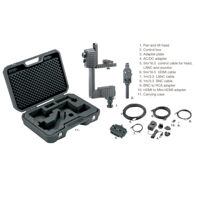 Baterijsko napajani daljinski upravljalnik (V-Mount, priložen je standardni napajalnik), ki se običajno pritrdi na konec roke, ima vgrajene tudi vhodno-izhodne priključke za video, upravljanje LANC ali napajanje. S temi vhodno-izhodnimi priključki lahko uporabite samo en kabel do motorne glave, kjer lahko uporabite kratke premostitvene kable neposredno do fotoaparata.