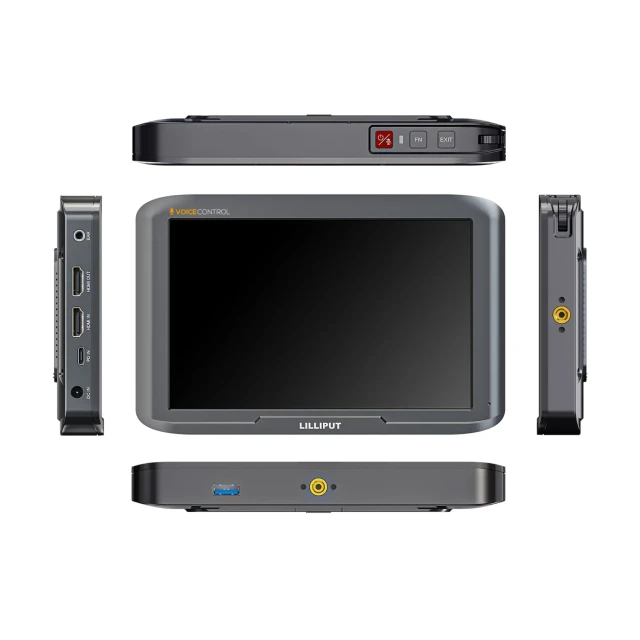 7-palčni 4K HDMI monitor kamere Lilliput V7 z glasovnim upravljanjem revolucionira spremljanje na snemalnem prizorišču z glasovnimi ukazi brez uporabe rok (≤1 m, ≥50 dB): preklapljajte valovne oblike, lažne barve, vrhove, nalagajte 3D LUT-e ali prilagajajte nastavitve brez dotika zaslona – idealno za rokavice, sterilna okolja ali enočlanske ekipe. Njegov 1920×1200 IPS zaslon zagotavlja svetlost 450 nitov, kontrast 1200:1, 160° zorni kot in 100 % BT.709 barvni prostor s podporo HDR HLG/ST2084 (300/1000/10000) za natančno osvetlitev in barve v vseh svetlobnih pogojih. HDMI 2.0 vhod/izhod brezhibno obdeluje do 4K60, vgrajena orodja pa vključujejo valovno obliko, vektorski osciloskop, histogram, lažne barve, zebro, ostrenje, anamorfno raztezanje in 8-kanalne avdio merilnike. Možnosti napajanja so izjemno prilagodljive: DC 7–24 V cilindrični priključek, USB-C PD (5 V/9 V/12 V/15 V/20 V) ali Sony NP-F baterije (plošča vključena). Z debelino le 25 mm in težo 320 g, s kovinskim ohišjem in 1/4"-20 pritrditvami na treh straneh je idealen za gimbale, ramenske nosilce ali režiserske kletke. V7 je najbolj kompakten, glasovno aktiviran monitor za snemalce RED, ARRI, Sony FX in Blackmagic.