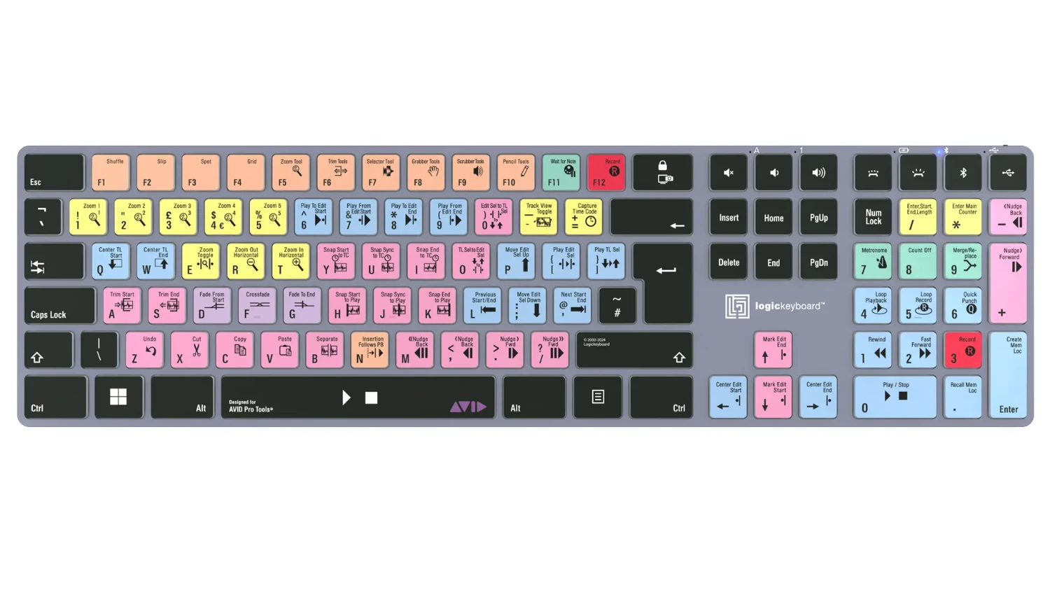 Zasnovana za Avid Pro Tools – izdelana za WindowsTa Logickeyboard je vaša prva izbira za urejanje v Avid Pro Tools. Ukazi za bližnjice, označeni na tipkah, in njihove barvno označene definicije vas v hipu naredijo za mojstra upravljanja Avid Pro Tools. Logickeyboard je idealen za glasbene producente, avdio urednike in vse ostale, ki pridno delajo z Avid Pro Tools.