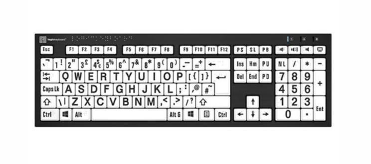 Tipkovnica Logickeyboard Braille/Large Black on White PC Assistive Keyboard je tipkovnica, zasnovana z mislijo na dostopnost, namenjena uporabnikom s slabovidnostjo ali slabim vidom. Opremljena je s tipkami z velikimi črkami in vtisnjenimi brajskimi znaki, kar zagotavlja vključujoče, vzdržljivo in uporabniku prijazno tipkanje ter funkcionalnost »plug-and-play« za operacijski sistem Windows.