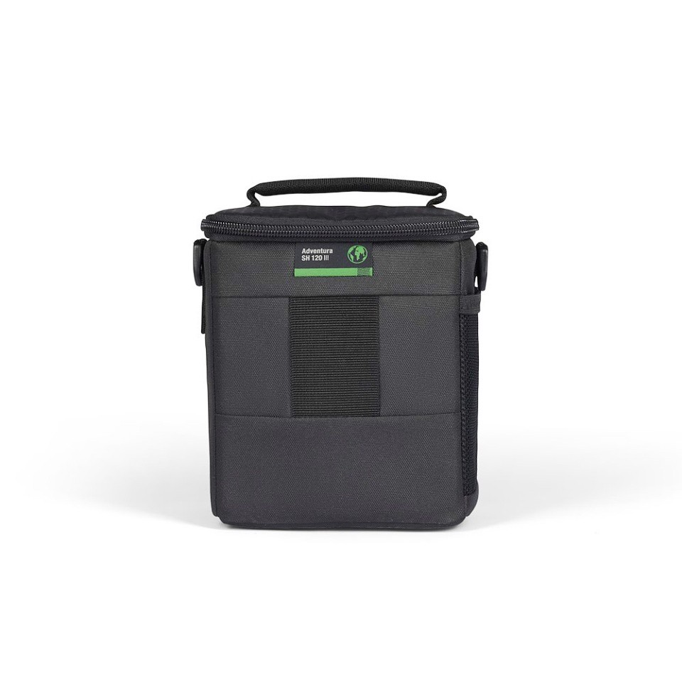 Lowepro Adventura SH 120 III je kompaktna, lahka torba za fotoaparat, zasnovana za zaščito brezoglednih fotoaparatov s polnim formatom in pritrjenim objektivom. Izdelana je iz 82 % recikliranih in v maso barvanih materialov ter ima trdno dno, notranji žep za pomnilniške kartice, razširljiv stranski žep ter več možnosti nošenja, vključno z ramenskim trakom in zanke za pas.