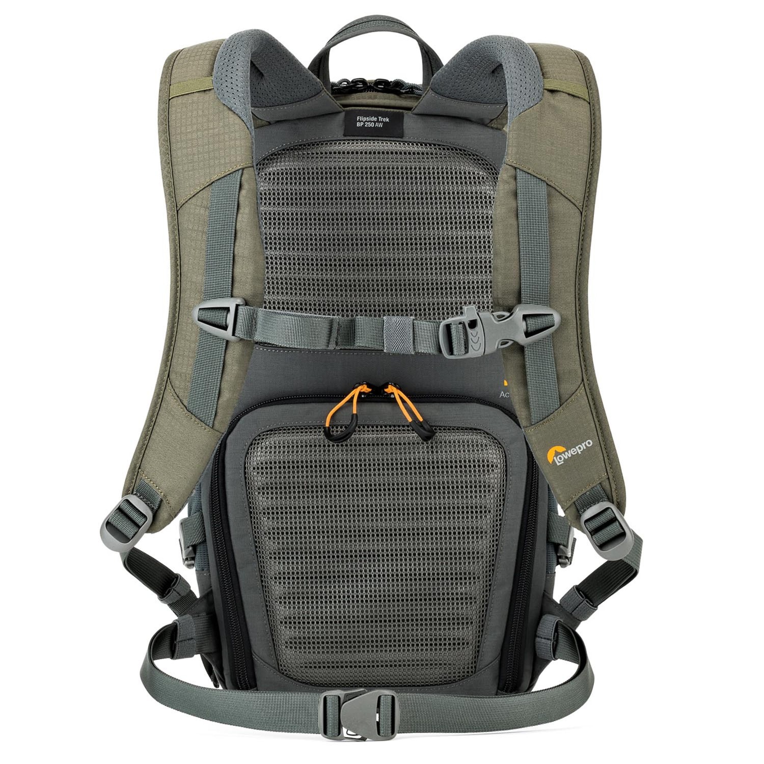 Lowepro Flipside Trek BP 250 AW je kompakten nahrbtnik za fotografsko opremo, namenjen fotografom, ki morajo s seboj nositi tako fotografsko opremo kot osebne predmete. Vanj se prilega oprema za brezogledalno kamero ali kompaktno DSLR kamero ter tablični računalnik; opremljen je z dostopom Flipside na strani telesa, nosilnim sistemom ActivZone™ za udobje ter več pritrdilnimi točkami za opremo za aktivnosti v naravi.