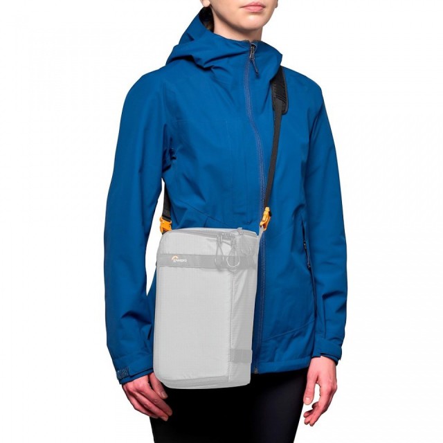Nosilec za telefon se lahko enostavno pritrdi na ramenski pas nahrbtnika Lowepro ali uporabi kot torbica za pas z elastičnim trakom.