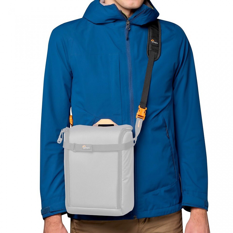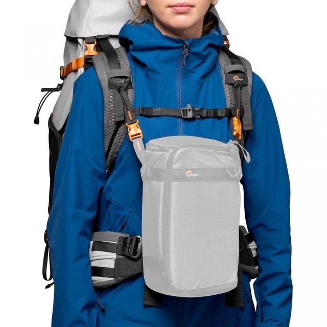 S pomočjopara pritrdilnih konektorjev lahko fotoaparat ali GearUp škatlo pritrdite neposredno na ramenski trak nahrbtnika Lowepro.