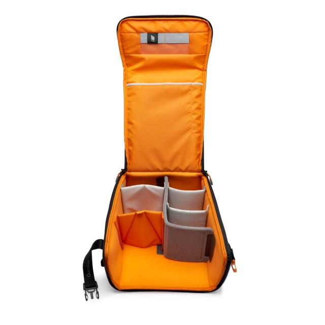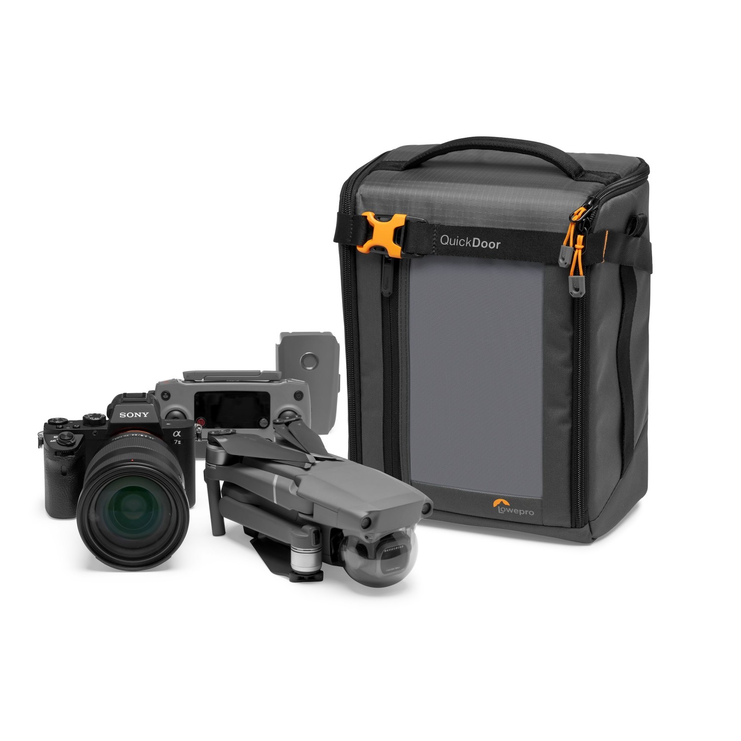 Poseben notranji žep ponuja prostor za pomnilniške kartice, zunanji žep pa za kable, pokrovčke objektivov in drugo dodatno opremo. Inovativen sistem dostopa QuickDoor omogoča hiter in varen dostop do vaše opreme, ne da bi morali razpakirati celoten organizator. GearUp Creator Box XL II se lahko uporablja samostojno kot prenosna torba ali pa se ga vstavi v večjo torbo, s čimer se vsaka torba spremeni v popolnoma funkcionalno rešitev za prenašanje fotoaparata.