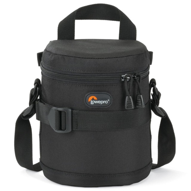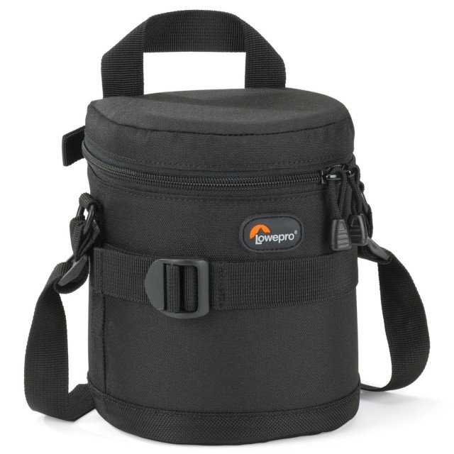 Črni etui za objektiveLowepro 11 x 14 cm je poimenovan po dimenzijah objektivov, ki se vanj prilegajo. V ta etui lahko na primer shranite objektiv s premerom do 11 cm in višino 14 cm.