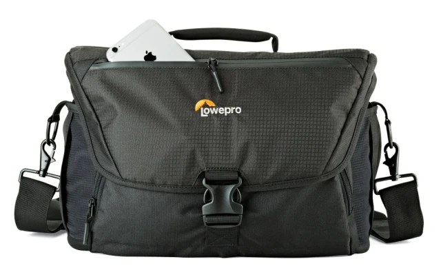 Pro nošení brašny je Lowepro Nova 200 vybavena odnímatelným ramenním popruhem pro pohodlné použití při fotografování a horním madlem pro přenášení v ruce.