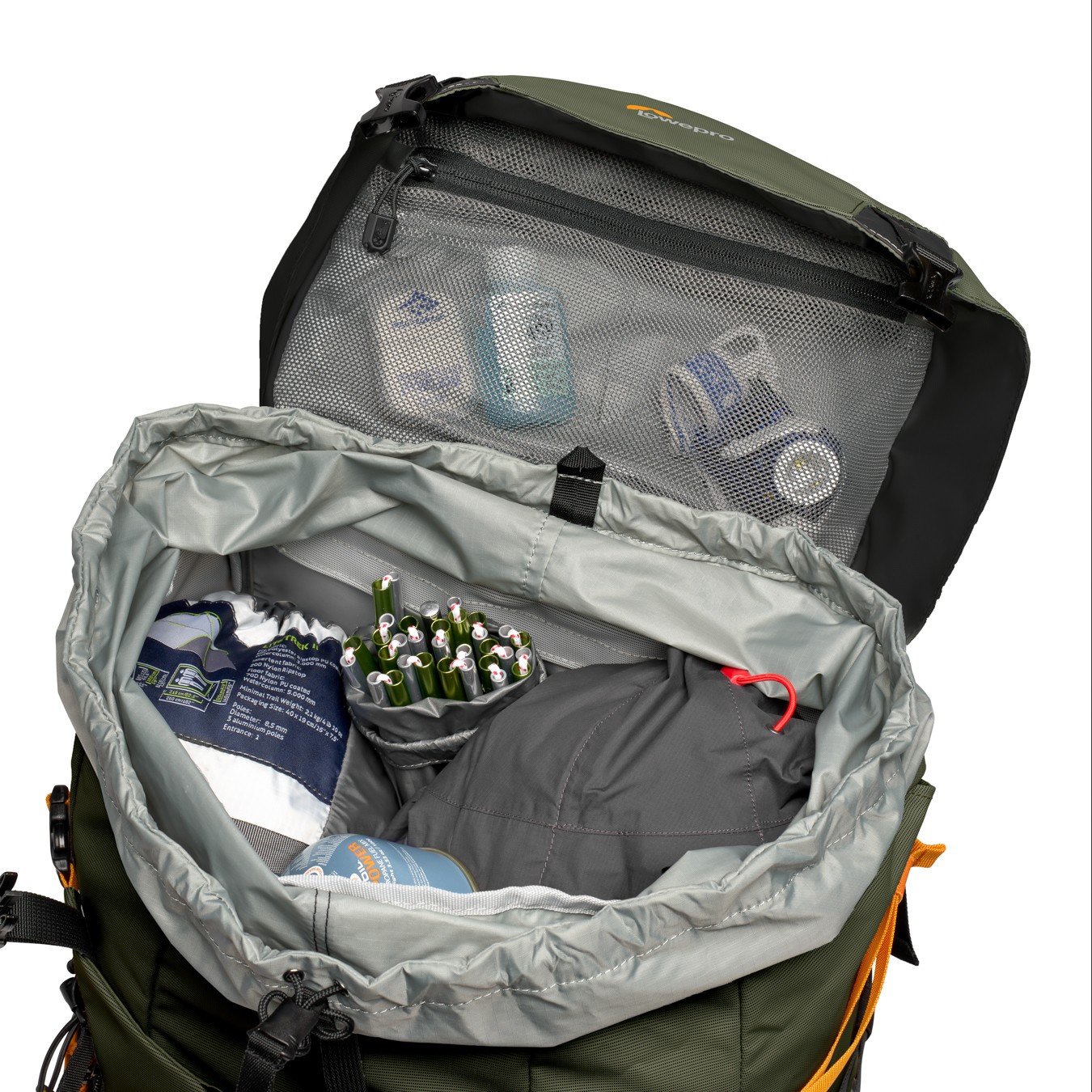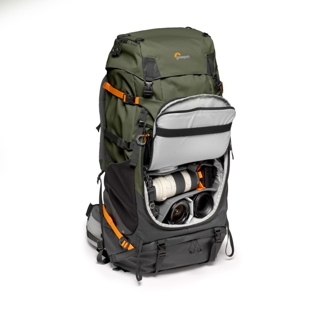 V nahrbtniku lahko udobno prenašate CSC ali DSLR fotoaparat z nameščenim objektivom 70–200 mm f/2,8 ter 1–2 dodatna objektiva, stativ in dodatke v odstranljivi vložki za fotoaparat GearUp PRO XL. Narejen je za daljše izlete v naravi in ponuja tudi prostor za večdnevne potrebščine, kot so spalna vreča, šotor, jakna, pohodniške palice in 3-litrski rezervoar za vodo (ni vključen).