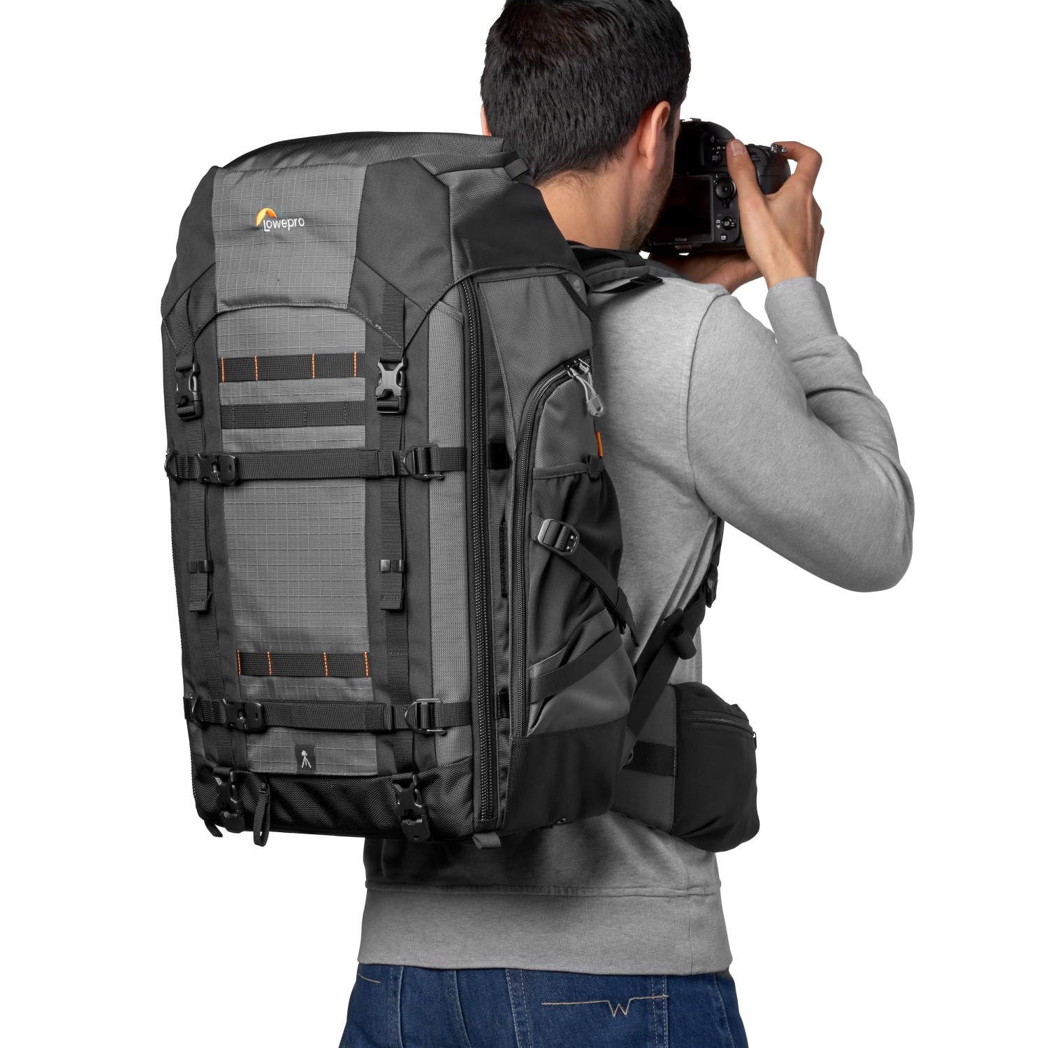 Torba Lowepro Pro Trekker BP 550 AW II Grey je posebej zasnovana za profesionalne fotografe in videografe, ki morajo varno in učinkovito prevažati veliko količino opreme. Njegova modularna dvodelna zasnova izpolnjuje zahteve letalskih prevoznikov za ročno prtljago in omogoča enostavno organizacijo 2–3 profesionalnih DSLR ali brezoglednih fotoaparatov (eden z nameščenim 400-mm objektivom), 4–6 dodatnih objektivov, 2 bliskavic, pa tudi 15-palčnega prenosnega računalnika, 10-palčnega tabličnega računalnika, tabličnega računalnika tipa Wacom, dronov, stativov in dodatkov. Nahrbtnik je izdelan iz 73 % recikliranih materialov, je trpežen, okolju prijazen in opremljen s pokrovom All Weather AW, ki opremo ščiti pred dežjem, snegom in prahom. Zadnji del ActiveZone™, ergonomski ramenski pasovi in nosilni pas zagotavljajo udobje skozi ves dan, medtem ko več notranjih in zunanjih predelkov omogoča hiter dostop do objektivov, dodatkov in osebnih predmetov.