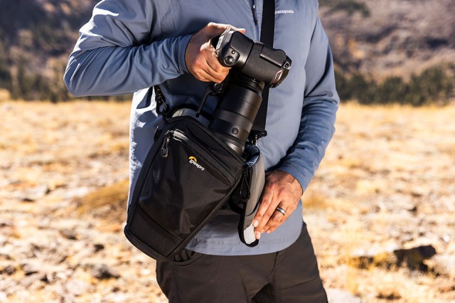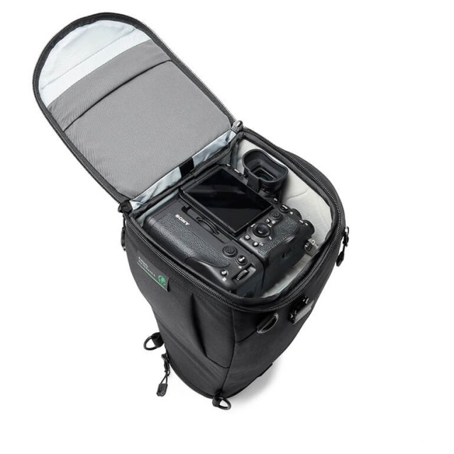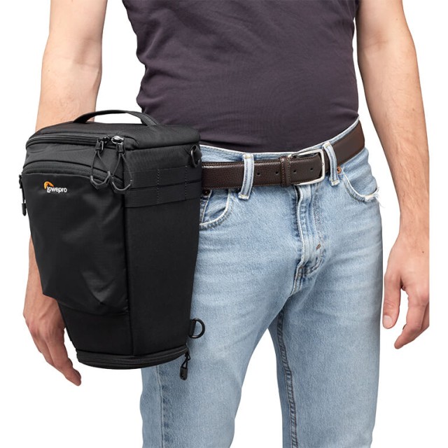 Predstavljamo pas ProTactic TLZ 75 Pro AW III, ki je zasnovan za zaposlene fotografe, ki ves dan fotografirajo dogodke in druga opravila, večinoma na prostem. Ta torbica je prilagojena ohišju polnega formata s portretnim oprijemom in z vstavljenim objektivom 70-200 f2,8 brez teleskopa. Torba ima razširitveni del za namestitev predpražnika objektiva v položaju za fotografiranje, vrata pa se zavihajo na stran za lažji dostop do držala. Zaponka za hitro zapenjanje omogoča hiter dostop ali dodatno varnost, medtem ko notranji delilnik drži fotoaparat blizu vrha za lažje odstranjevanje ali razdeli torbo za komplet z dvema objektivoma.