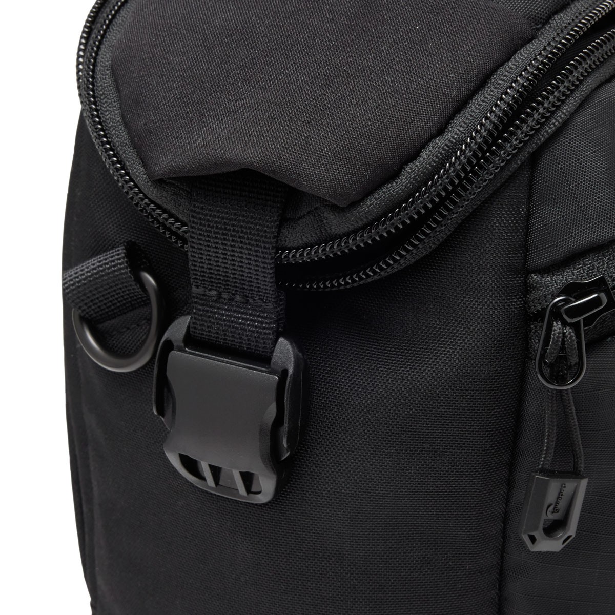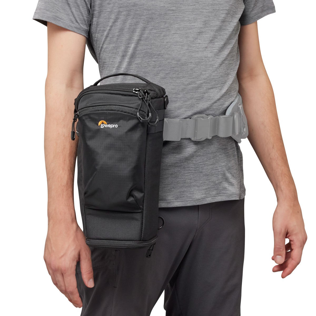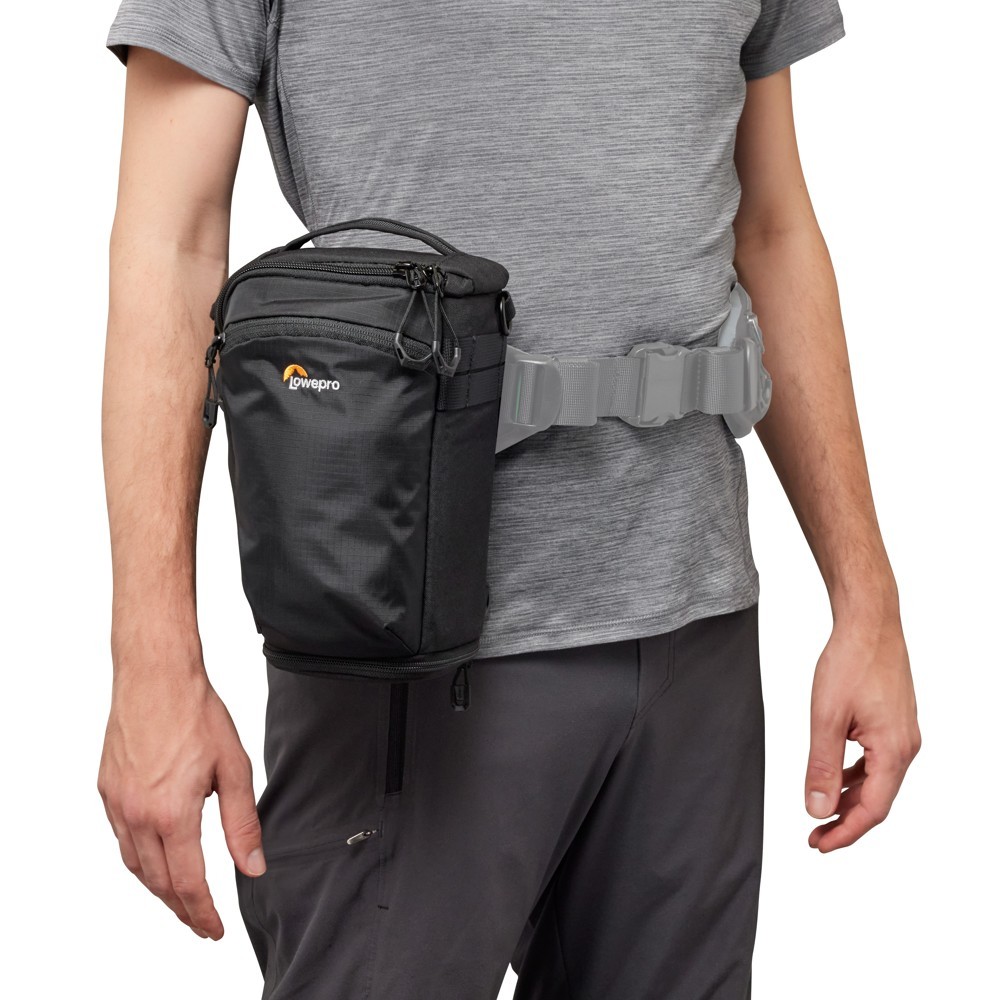 Ta tanka torba z zgornjim polnjenjem ponuja raznolike možnosti nošenja. Uporabite glavni in stabilizacijski ramenski pas za standardno nošenje prek ramena, preklopite na nošenje prek prsi za hiter dostop ali jo pritrdite na pas ProTactic Utility Belt III, združljive pasove ProTactic ali standardni 38-milimetrski pas za hlače. Torba vključuje združljivost s sistemom SlipLock™ za dodatne torbice za objektive, kar fotografom omogoča, da svoj sistem razširijo na poti.