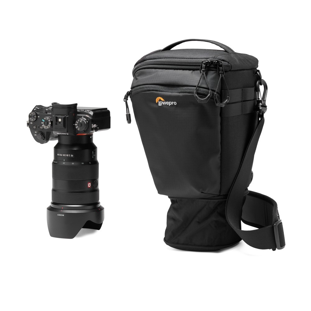 Torba Lowepro ProTactic TLZ 75 Slim AW III, zasnovana za profesionalne fotografe, ki so veliko na poti, je torba za fotoaparat z zgornjim vstopom, namenjena shranjevanju polnoformatnega DSLR-telesa z nameščenim objektivom (do 70–200 mm F2,8), vključuje pa tudi razširljiv predel za sončno kapico v položaju za fotografiranje. Vrata torbe se odpirajo na stran, kar omogoča hiter in ergonomski dostop do opreme, medtem ko notranja pregrada varuje vaš fotoaparat ali omogoča shranjevanje kompleta z dvema objektivoma.