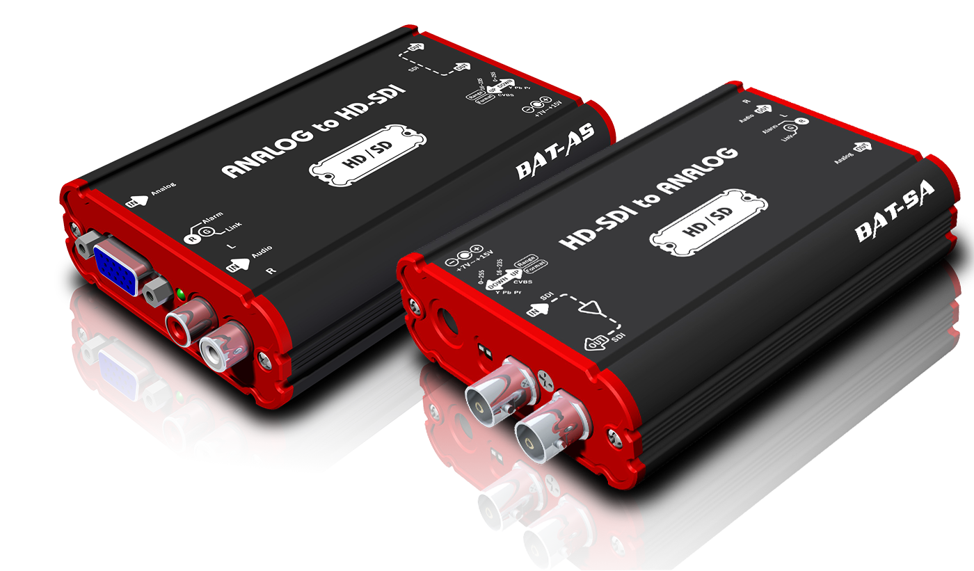 Pretvorniki BAT zagotavljajo visokokakovostne signale z najmanjšim tresljajem. Uživajte v dolgem dosegu signala SDI z nizkim šumom. Na voljo so štirje modeli pretvornikov BAT, med katerimi lahko izbirate glede na svoje potrebe.