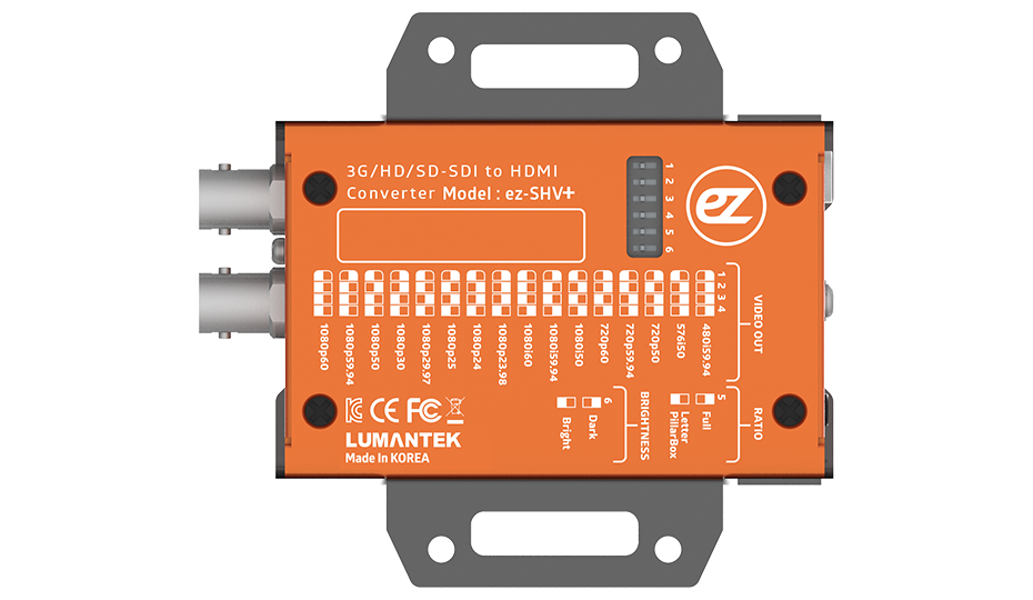 Naenkrat lahko preprosto spremljate ločljivost vhodov/izhodov, dolžino kabla in vzorec mreže. LUMANTEK ez-SHV+ ima izhod SDI LOOP. Preko LCD-zaslona lahko spremljate vhodni videoposnetek. S stikalom lahko izberete ločljivost od 480i do 1080p. Nadzorujete lahko tudi svetlost LCD-zaslona in razmerje zaslona.