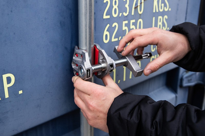 Vzdržljiva objemka s sprednjimi čeljustmi z razponom 5 centimetrov in največjo nosilnostjo 50 kg.
