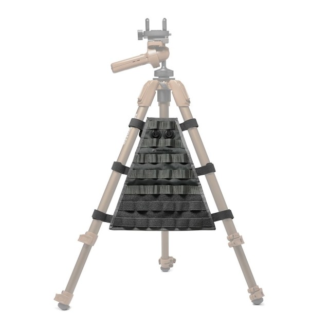 Manfrotto MB RO LO ALPHA S.H.O.T. Tripod Leg Organizer je taktični, temno siv MOLLE/PALS ovitek za noge, ki vsak stativ (s premerom nog do 30 mm) takoj spremeni v modularno opremo. Z nastavljivimi trakovi Velcro in vgrajenimi magnetnimi zaponkami Fidlock za hitro sprostitev varno nosi torbice, vrečke iz medenine, števce, čistilne komplete ali katero koli dodatno opremo, združljivo s sistemom PALS, brez da bi jo bilo treba odstraniti – tudi pri zlaganju nog –, kar ga naredi za najboljšo dodatno opremo za natančne strelce, opazovalce in terenske fotografe.
