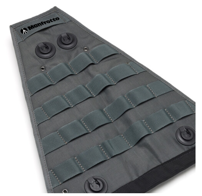 Manfrotto ALPHA S.H.O.T. Leg Organizer spremeni navadne noge stativa v popolnoma prilagodljivo platformo za opremo. Fleksibilna, vodoodbojna najlonska/poliestrska prevleka je opremljena s sistemom P.A.L.S. (Pouch Attachment Ladder System), tako da lahko namestite praktično katero koli MOLLE-združljivo torbico, tokovnik ali dodatno opremo točno tam, kjer jo potrebujete. Zelo trpežni trakovi z velcro zaponko se lahko neskončno prilagajajo in se prilegajo nogam s premerom do 30 mm, medtem ko integrirana magnetna sidra Fidlock omogočajo enoročno, izredno hitro pritrditev uradnih Manfrotto ALPHA S.H.O.T. Field Pouches in Brass Pouches. Mehka konstrukcija pomeni, da lahko stativ zaprete in prenašate, ne da bi kdaj koli odstranili organizator, tako da je vaša oprema pripravljena v nekaj sekundah.