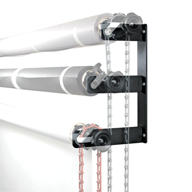 Komplet kavljev Manfrotto 045 omogoča takojšnjo namestitev treh zvitkov papirja brez talnih stojal. Vsaka črna jeklena konzola s prašnim premazom ima tri U-oblikovane nosilce z varnostnimi zatiči za pritrditev jedra Expan 046, kar omogoča hitro menjavanje barv v portretnih studijih ali e-trgovinah. Namestite ga na steno s priloženimi sorniki in vijaki za trajno namestitev ali ga pritrdite na Super Clamp 035 s priloženim kompletom vijakov za prenosno, s sponkami opremljeno opremo na Autopoles ali ceveh. S težo 1,085 kg na nosilec združujejo vzdržljivost in modularnost – idealni so za hiše ali lokacijske snemalce, ki potrebujejo prilagodljivo podporo za ozadje z veliko zmogljivostjo.