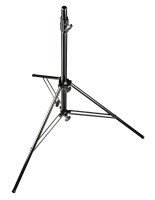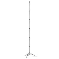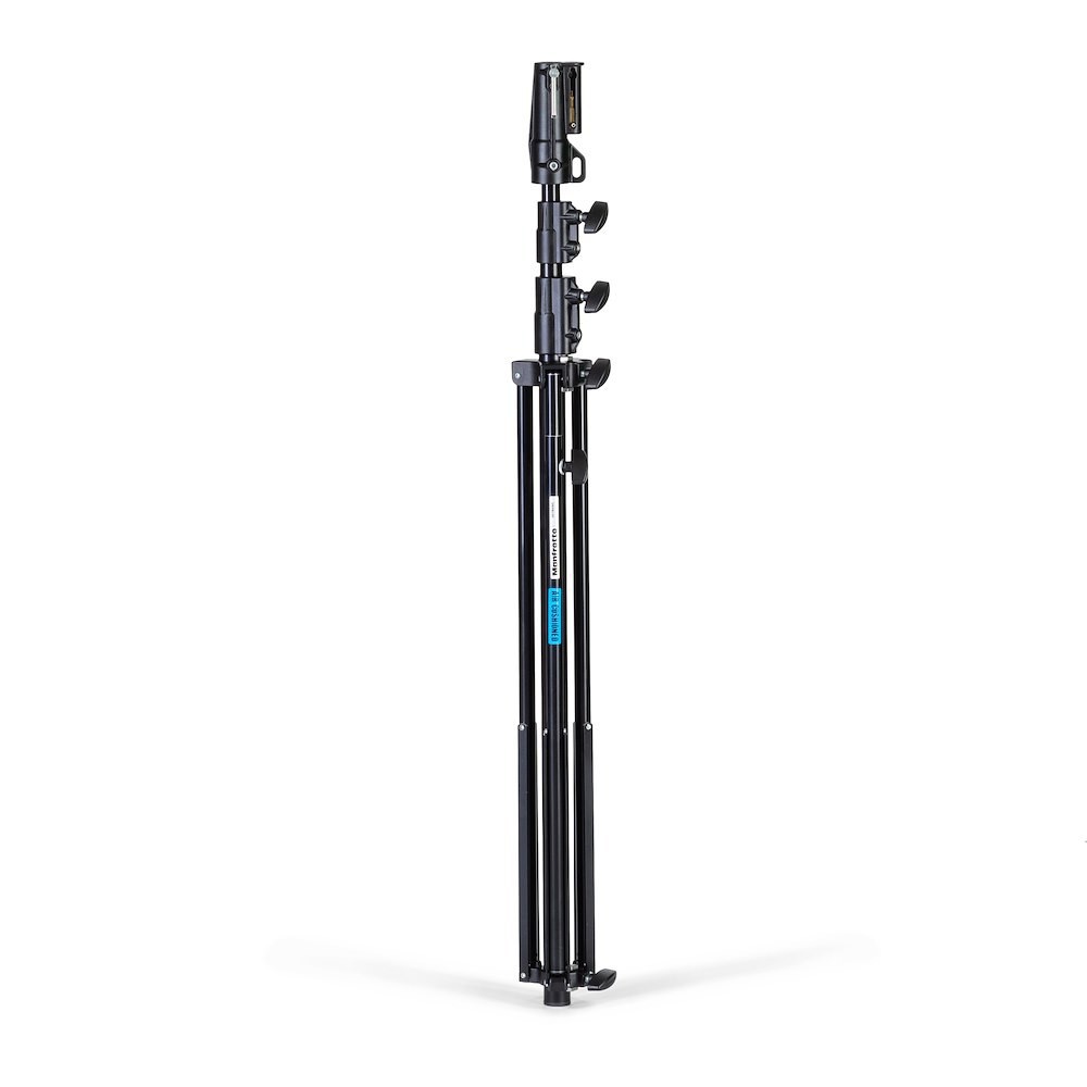 Manfrotto 007BUAC črn aluminijasti stojalo z zračnim vzmetenjem je robustno, prenosno 3 kg aluminijasto stojalo s 3-delnimi zračnimi vzmetenimi podstavki, ki se raztezajo od 124 do 315 cm in nosijo 12 kg (2,5 kg pri maksimalni raztegnitvi) z dvojno ojačenimi nogami, univerzalnim 28 mm vtičnikom + 16 mm sornikom + 3/8" vijakom, eno izravnalno nogo in priporočenimi kolesi, ki zagotavljajo trdno stabilnost za lokacijske ali studijske luči, modifikatorje ali kamere.