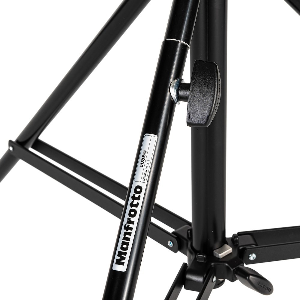 Manfrotto 008BU črn aluminijasti dvodelni stojalo Cine Stand je lahek, a hkrati zelo trden nosilec, zasnovan za profesionalno snemanje v studiu in na lokaciji, ki ponuja odlično stabilnost in vsestranskost.