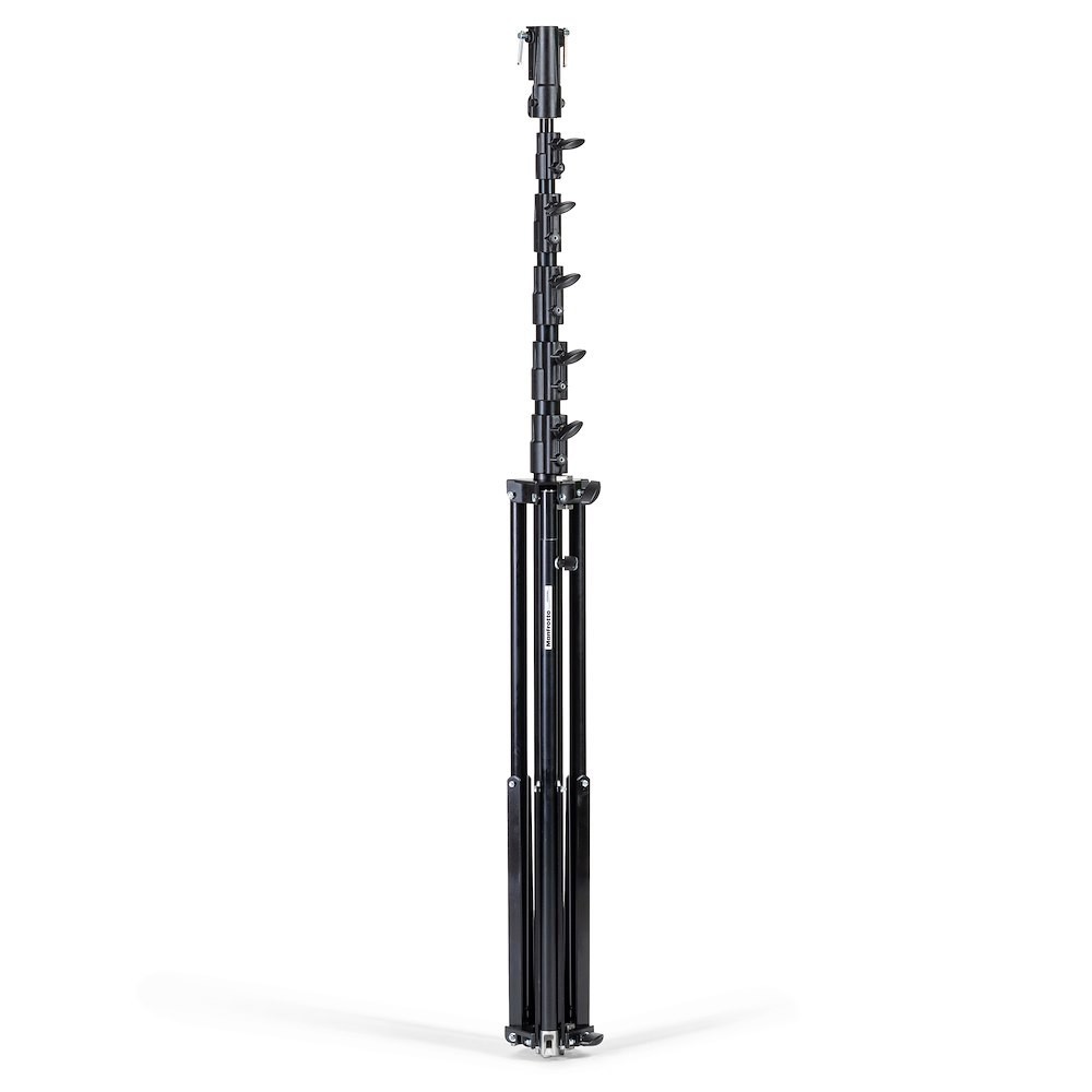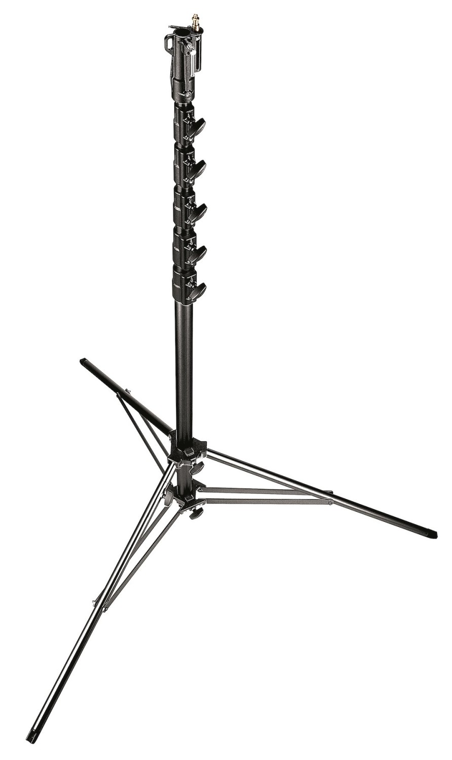 Manfrotto 269HDBU črn aluminijasti super visok stojalo je najvišje stojalo za svetlobo na svetu, pripravljeno za produkcijo: trdno, dvojno ojačano 7,3 m (24 ft) črno aluminijasto stojalo s 6 deli, 10 kg nosilnostjo, eno izravnalno nogo in univerzalno glavo tipa 14 (28 mm vtičnica + 16 mm sornik + 3/8″ vijak). Idealno za snemanje z višine, velike softbokse in visoko ključne/robne luči v velikih studijih ali na lokaciji, ko potrebujete neverjetno višino, ne da bi morali najeti dvigalo.