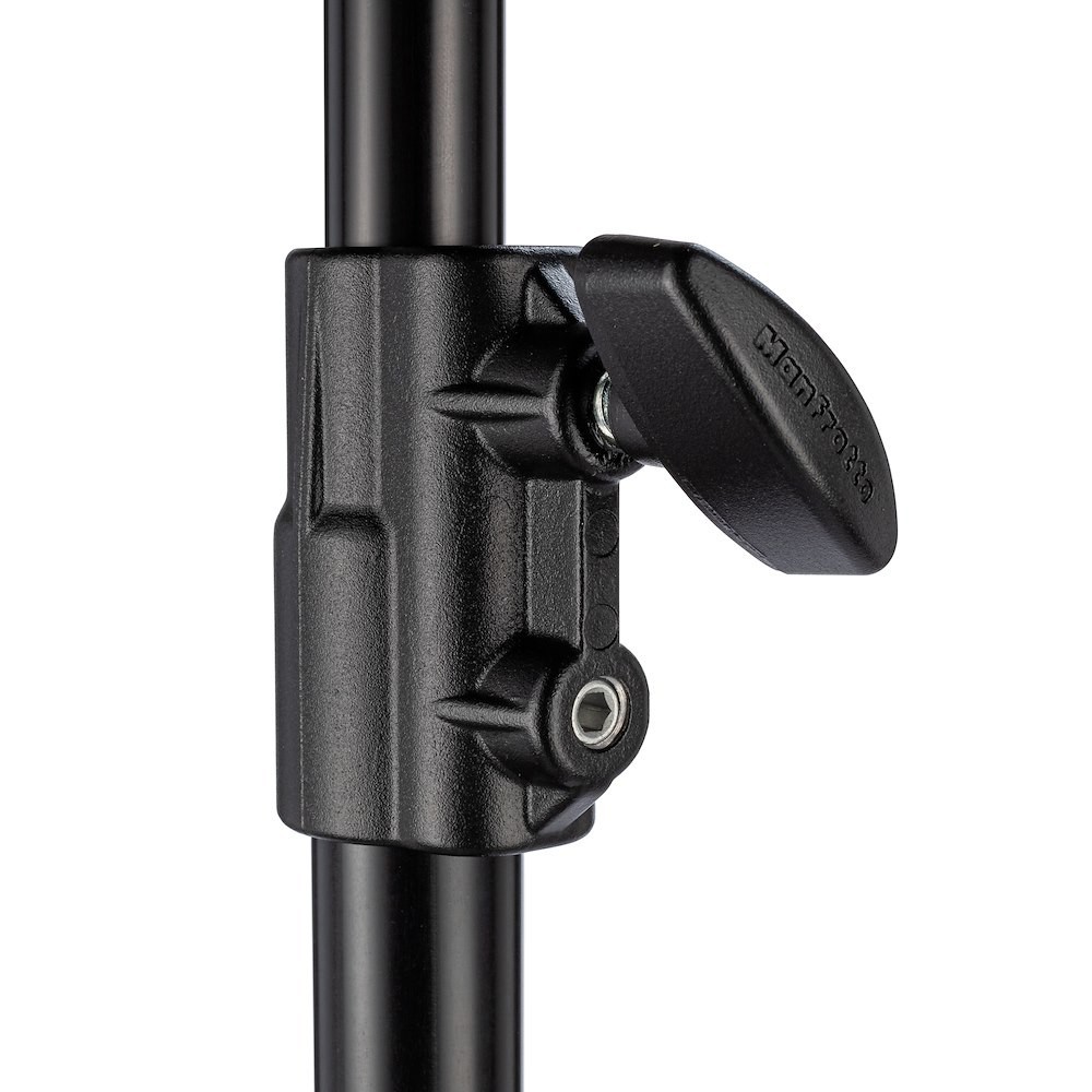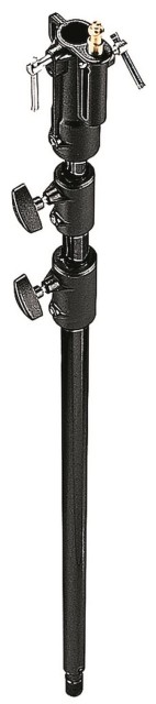 Manfrotto 146B podaljša vsak stojalo, Autopole ali steber, opremljen z 16-mm baby sprejemnikom, za kar 1,37 m do 3,17 m s tremi črnimi anodiziranimi aluminijastimi deli z varovanimi zapornimi obroči. Spodnji del ima 5/8-palčni moški vijak za takojšnjo priključitev, zgornji del pa 5/8-palčno žensko vtičnico, pripravljeno za luči, pantografe ali dodatne podaljške. Primeren za težka bremena brez upogibanja, je idealna rešitev za portretne studije, modne scene ali gledališke priprave, ki potrebujejo luči ali kamere na višini stropa, ne da bi se zatekli k odrom – lahek, a hkrati izjemno trden, saj tehta le 2,8 kg.