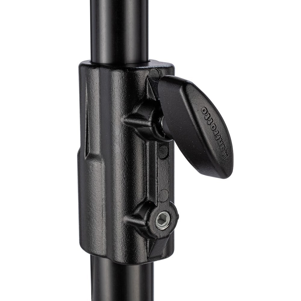 Manfrotto 146B črna aluminijasta podaljška za visoko stojalo je robustna 3-delna črna aluminijasta podaljška (premeri 35/30/25 mm, 2,8 kg), ki dodaja 137–317 cm višine kateremu koli težkemu stojalu ali stebru z 5/8″ (16 mm) ženskim vtičnim nastavkom – zagotavlja trdno višino za nadglavne luči, kamere ali boom mikrofone v velikih studijih.