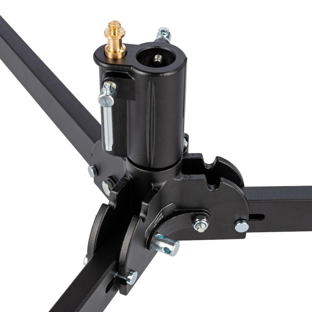 Manfrotto 297BBASE črna velika zavora je profesionalni studijski dodatek, zasnovan za zagotavljanje trdne stabilnosti stojal za razsvetljavo, stebrov in druge studijske opreme. Z veliko površino 100 cm zagotavlja vrhunsko ravnotežje in varnost, ena izravnalna noga pa omogoča natančno nastavitev na neravnih površinah. Osnova je opremljena z zavornimi kolesi, ki omogočajo gladko pozicioniranje in varno zaklepanje na mestu, ter združuje mobilnost in zanesljivost.