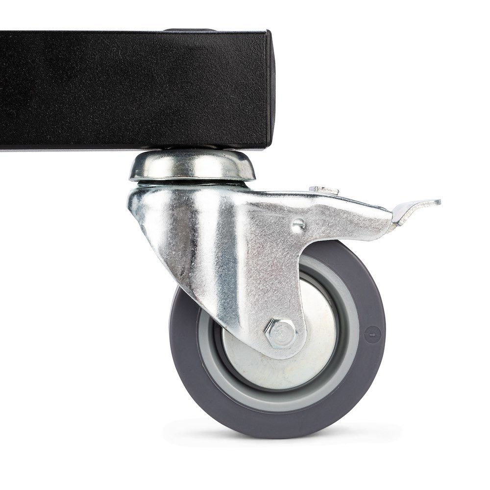 Manfrotto 297BBASE Black Large Brake Base je robustna studijska podlaga z zavornimi kolesi in izravnalno nogo, zasnovana za zagotavljanje maksimalne stabilnosti za osvetlitev in podporno opremo do 40 kg. S minimalno in maksimalno višino 28 cm ta podlaga zagotavlja nizko, stabilno težišče, idealno za zahtevne studijske postavitve.
