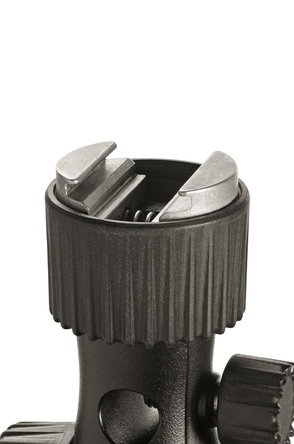 Tento stativový držák blesku a odrazného deštníku se postará o maximální zabezpečení vašeho zařízení. Snap Tilthead s nástavcem hotshoe má speciální vyvažovací mechanismus a pružinový systém, který zabraňuje pádu vašeho zařízení. Kompatibilní se všemi značkovými blesky. Tento univerzální, hotshoe nástavec se snadno připojuje, takže se během okamžiku snadno připravíte na další focení. Naleznete zde také připojení na deštník a chytrý uzamykací systém, který umožňuje rychlé nastavení zařízení. K upevnění blesku použijte inteligentní pojistný kroužek. Odšroubujte kroužek, abyste otevřeli cold shoe a přišroubujte jej tak, abyste blesk zajistili. Díky tomu můžete během několika vteřin snímat jeden snímek za druhým. Manfrotto Cold Shoe Tilt Head má užitečnou nosnost až 2 kg. Aktivujte bezpečnostní zámek automaticky umístěním držáku na stojan osvětlení a okamžitě změňte polohu vašeho zařízení úpravou těsnosti úrovně blokování.