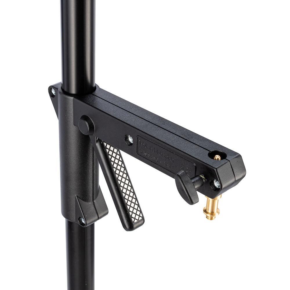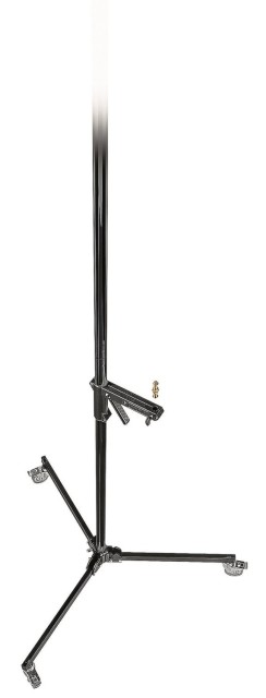 Manfrotto 231B Black Column Light Stand je profesionalni enostolpni studijski stojalo z zaklenljivimi kolesi, odstranljivo podnožje na kolesih in vzmetno drsno roko, ki se gladko pomika od 35 cm do 250 cm in nosi do 8 kg skupne teže (2 kg pri polni raztegnitvi) in več svetil prek univerzalnih 1/4″ in 3/8″ zgornjih pritrditev – idealen za hitro in natančno pozicioniranje v studiu ter enostaven prevoz.