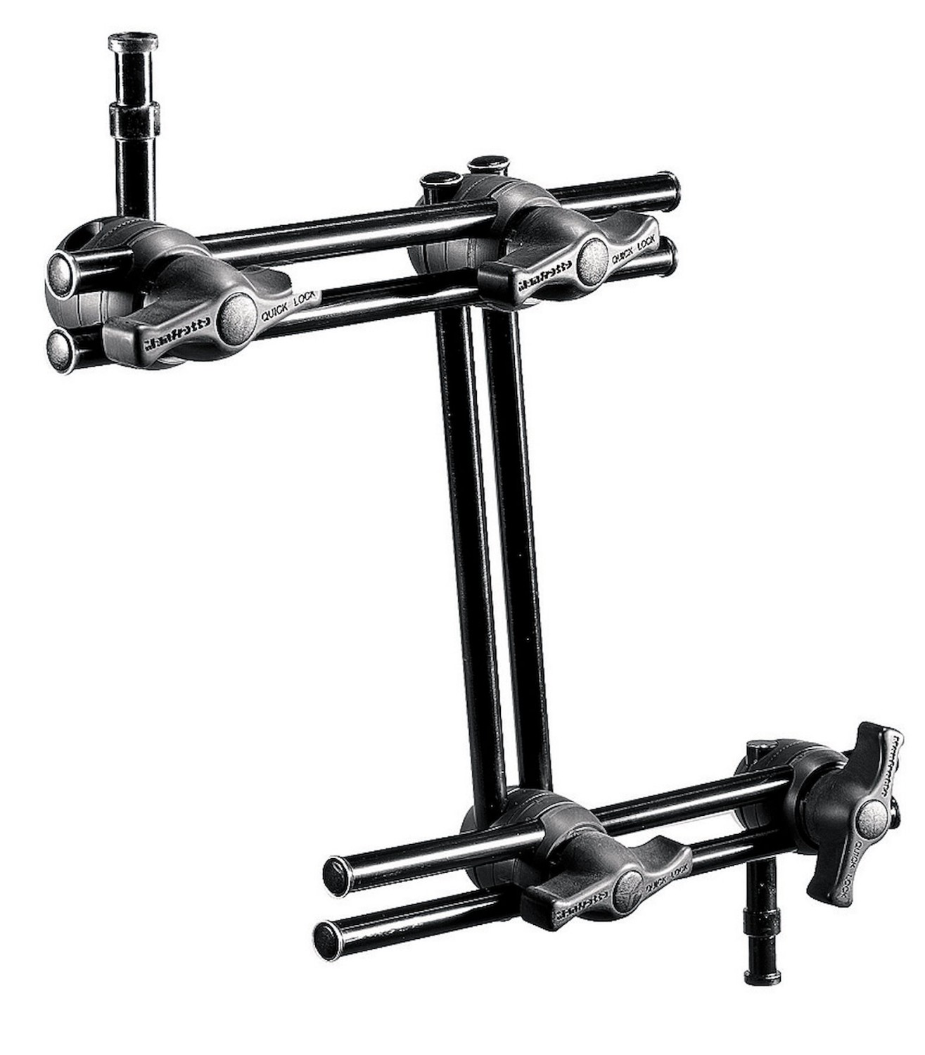 Manfrotto 396AB-3 je robustna 3-delna črna aluminijasta dvojno artikulirana roka (maksimalni doseg 860 mm, nosilnost 4,5 kg, teža 790 g) s hitrimi zapornimi ročaji, podaljšljivim drsnim srednjim delom, 16 mm šestkotnim/univerzalnim spodnjim nastavkom (združljiv s Super Clamp), in zgornjim 5/8" sornikom + 3/8" notranjim navojem, ki zagotavlja vrhunsko…