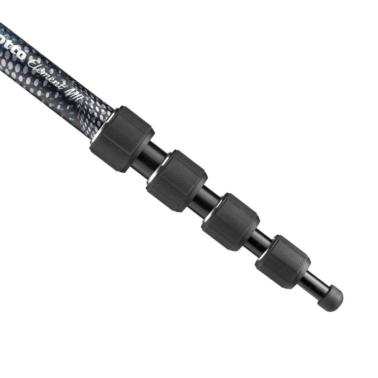 Manfrotto MMELMIIA5BK Element MII Monopod Black je 5-delna aluminijasta podpora, ki se zloži na 43 cm, podaljša na 159 cm in nosi 16 kg, opremljena je z nogami s twist-lock zapiranjem, reverzibilnim 1/4"-3/8" navojem, gumijastim ročajem, zapestnim trakom, ki zagotavlja trdno, ultra-prenosno stabilnost za DSLR-je, CSC ali fotografiranje z dolgimi objektivi v paketu, ki tehta 500 g.