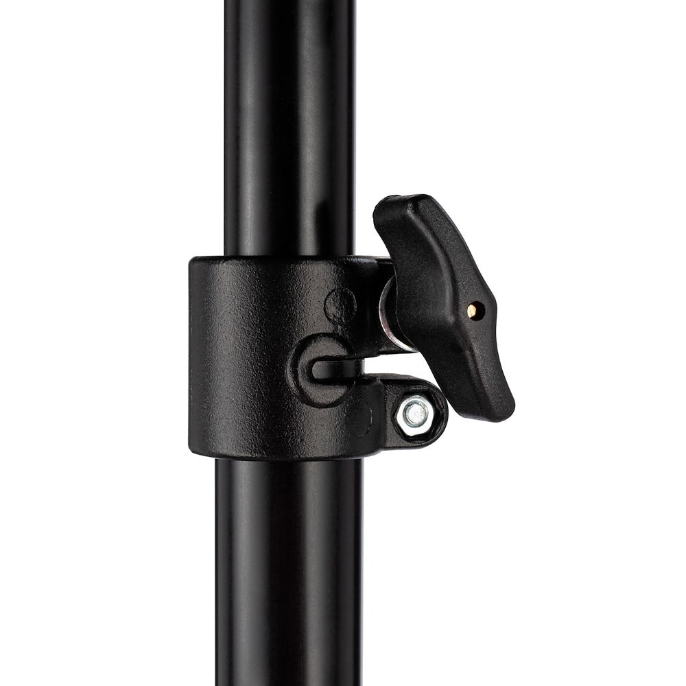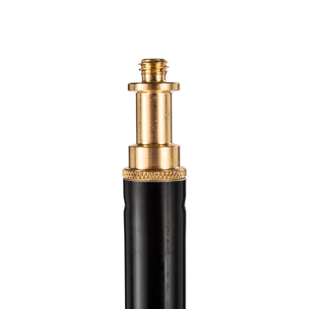 Podaljšek Manfrotto 099B se vstavlja v katero koli 5/8" vtičnico in se zaklene s pomočjo vrtljivega obroča, da doseže skupno višino 235 cm. Trije aluminijasti deli se gladko raztegnejo z ergonomskimi gumijastimi ročaji, črna prašna barva pa je odporna proti praskam in bleščanju. 3/8"-16 moški vijak na vrhu sprejema standardne pritrdilne elemente – idealno za luči za lase, fotografiranje izdelkov od zgoraj navzdol ali roke. S težo le 600 g in dolžino 90 cm v zloženem stanju je idealna rešitev za dvigovanje majhnih do srednje velikih pripomočkov brez polnega stojala, idealna za portretne studije, video snemanje ali opremo za snemanje na lokaciji.