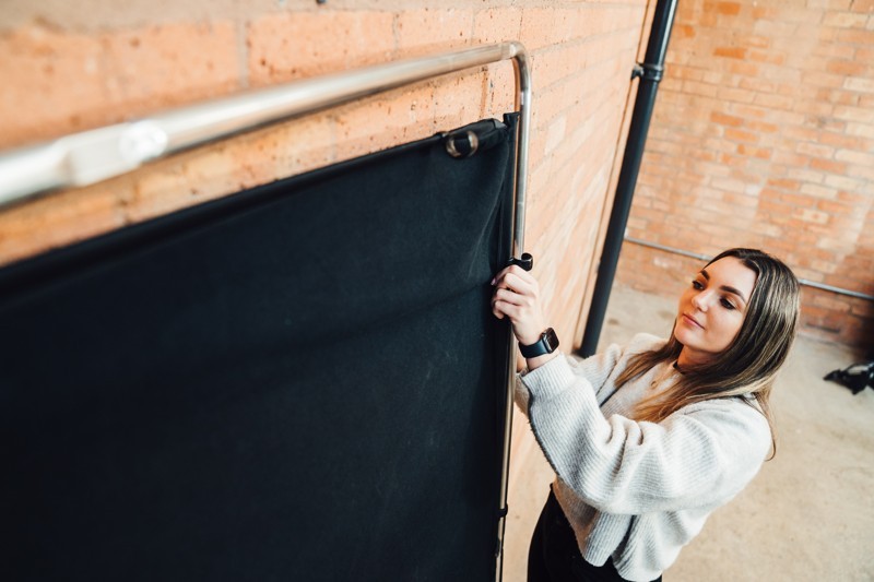 Chroma Key EzyFrame Black je fotografsko in video ozadje velikosti 2 m x 2,3 m (6,5' x 7,5').