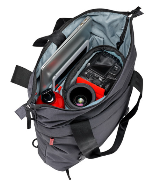 Manfrotto Manhattan (MB MN-T-CH-20) je vsestranska, urbano siva torba za fotoaparat s tremi načini nošenja, ki se v trenutku spremeni iz nahrbtnika v torbo čez ramo ali vrečko in varno prenaša vrhunski brezzrcalni fotoaparat ali začetniški DSLR z objektivom 70–200 mm f/2,8 ter dva dodatna objektiva, 15-palčni prenosni računalnik, 9,7-palčnim tabličnim računalnikom, osebnimi predmeti in celo majhnim stativom – vse iz vodoodpornega balističnega najlona s priloženim dežnim pokrovom.
