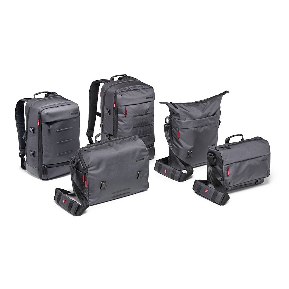Manfrotto Manhattan Speedy-30 Messenger (MB MN-M-SD-30) je elegantna, urbana siva torba za fotoaparat, v katero se lahko shrani polnoformatni DSLR (npr. Canon 5D Mark IV) s pritrjenim objektivom 70–200 mm f/2,8 ter 3–4 dodatnimi objektivi, 14-palčnim prenosnim računalnikom in 9,7-palčnim tabličnim računalnikom, z odstranljivo vložkom Flexy Camera Shell, skritim priključkom za stativ, pasom za stabilizacijo na kolesu, rokavom za voziček in popolno zaščito pred vremenskimi vplivi.