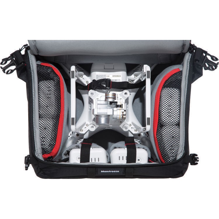 Nahrbtnik Manfrotto PL-3N1-35 DJI Edition Photo Backpack, razvit v sodelovanju z DJI, ponuja zanesljiv in organiziran način za prevoz dronov serije Phantom in nujnega dodatnega pribora. Tovornjak je zasnovan na preizkušeni zasnovi Manfrotto za video tovornjake in podpira modele DJI Phantom 1 do Phantom 4 Pro+, saj omogoča varno shranjevanje letala, daljinskega upravljalnika z razširitvijo dometa, do pet letalskih baterij, polnilnika, rezervnih propelerjev in dodatkov.