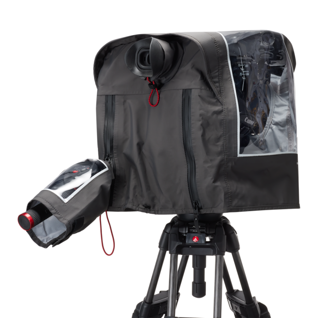 Manfrotto Pro Light Cineshield M/L je profesionalni dežni pokrov, prilagojen za srednje velike in velike kamere, ki ščiti vašo kamero, mikrofon, zunanji monitor, oddajnik in drugo opremo pred neugodnimi vremenskimi razmerami. Izdelan je iz trislojnega materiala s toplotnim tesnjenjem in minimalnim šivom, kar zagotavlja vrhunsko vodoodpornost in trajno zaščito.