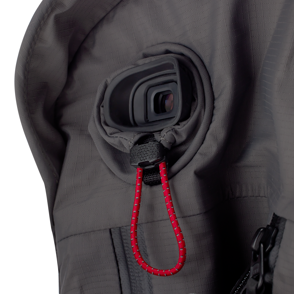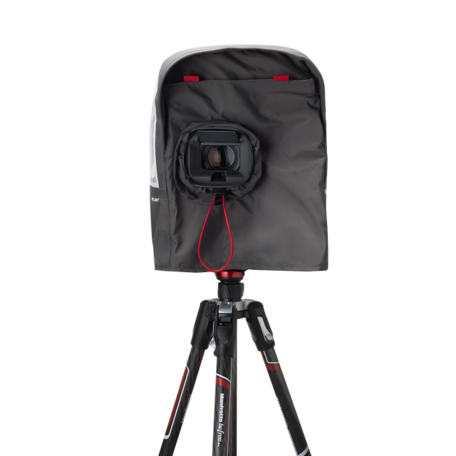 Manfrotto Pro Light Cineshield S/M zaščita pred dežjem je zasnovana za majhne do srednje velike kamere in ponuja celovito zaščito za kamere in dodatke, kot so mikrofoni, monitorji in oddajniki. Izdelana je iz trislojnega visokokakovostnega materiala s toplotnim varjenjem in minimalnim šivom, kar zagotavlja vrhunsko vodoodpornost. Veliko prozorno okence omogoča enostavno upravljanje kamere, medtem ko zapiranje z vrvico na odprtinah za objektiv in iskalo, ojačano s silikonom, zagotavlja dobro prileganje in zmanjšuje gibanje.