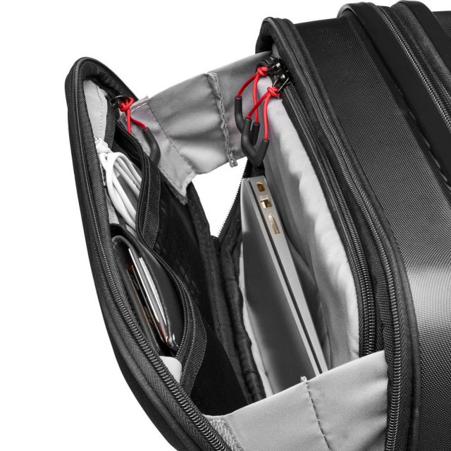 Opremljen je s 4 vrtljivimi dvojnimi kolesi, ki olajšajo prenašanje težke opreme, in sprednjim hitrim dostopom za 15-palčni prenosni računalnik, dodatke ali dodatni dostop za fotografsko opremo. Ta kovček ima notranji organiziran žep s predali CPS za največjo prilagodljivost notranje razporeditve, ki se lahko uporablja kot predal za fotografijo ali pa se odstrani in Spin-55 se lahko uporablja kot običajna potovalna prtljaga. Ima tudi notranje prečne trakove za shranjevanje osebnih predmetov med vsakodnevno uporabo
