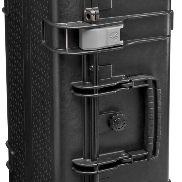 Poleg tega ustreza dimenzijam kabinske prtljage, ki jih zahteva večina letalskih prevoznikov*, in ima dvostopenjski sistem zložljivih vozičkov. Novi Pro Light Reloader Tough H-55 ima notranjo odstranljivo enoto za organizacijo fotoaparata, ki jo je mogoče prilagoditi z Manfrottovimi nastavljivimi stikali CPS. Vanjo lahko namestite DSLR s priloženim objektivom 400/f2,8, drugo ohišje fotoaparata in 3-4 dodatne objektive (odvisno od velikosti). Testiranje z oznako IP67: brez vdora prahu in zmožna začasnega potopitve v vodo do 30 minut.