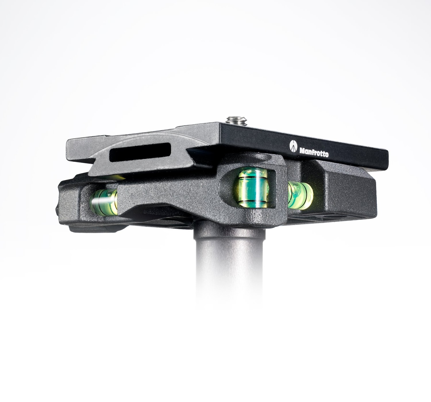 Manfrotto MSQ6 Q6 Top Lock Quick Release Adaptor je 180 g aluminijasta Arca-združljiva sponka z vstavljivo ploščo za vstavljanje od zgoraj, avtomatskim varnostnim zatičem, trojnimi libelami (eno na os) in nosilnostjo 10 kg – nadgradnja izbranih glav Manfrotto (MH054/055/057, 468MG, XPRO-BHQ2) za hitro in izjemno varno menjavanje težkih profesionalnih fotoaparatov.