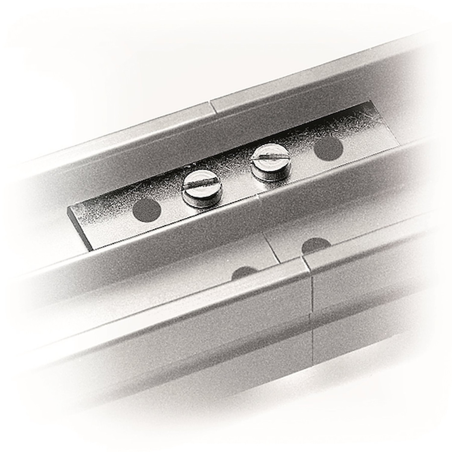 Manfrotto FF3208 Rail Connector zagotavlja nemoteno podaljšanje fiksnih vodil FF3202/FF3204 v sistemih Sky Track s pritrditvijo preko spoja z dvema nazobčanima ploščama in štirimi visokotrdnimi vijaki. Zasnova popolnoma poravna zgornji vodnik, tako da pantograf ali voziček drsi brez zatikanja. Vedno ga uporabljajte v kombinaciji z nosilcem FF3210 ali FF3212, ki prekriva spoj za porazdelitev obremenitve – to je ključnega pomena za težke svetlobne naprave v televizijskih studijih, hišah ali gledaliških scenah. S težo le 84 g je lahek in zanesljiv spoj za profesionalce, ki zahtevajo neprekinjeno sledenje nad glavo na dolgih razdaljah.
