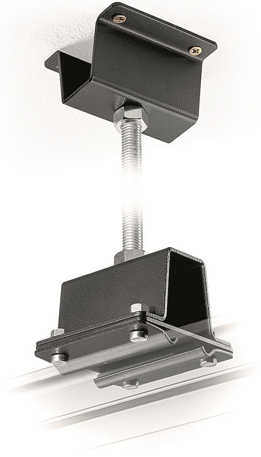 FF3214B je komplet za namestitev na strop, ki je pripravljen za namestitev na legendarni sistem Manfrotto za namestitev na strop. Zgornja plošča se z vijaki varno pritrdi na tramove ali beton s štirimi visokozmogljivimi pritrdilnimi elementi, 1 m dolga navojna palica M12 (ki jo je mogoče enostavno prerezati na želeno dolžino) se spusti navzdol, spodnji nosilec pa se pritrdi in natančno nastavi s priloženimi maticami M12. Ko je celotna tirnica obesena, se končno izravnavanje doseže preprosto z nastavitvijo matic na vsakem nosilcu, kar je ključnega pomena za nemoteno gibanje pantografa in vozička. En komplet je potreben približno na vsakih 2 m in je obvezen na vsakem spoji tirnice (pri uporabi spojnikov FF3208).