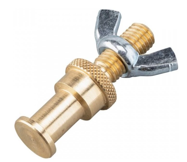 Manfrotto 264 je polirani medeninasti 16 mm (5/8") baby stud z M10 moškim navojem in priloženo krilno matico, zasnovan za vijačenje v katero koli M10 Super Clamp vtičnico, ki jo pretvori v varen sprejemnik svetlobnega stojala za naprave.