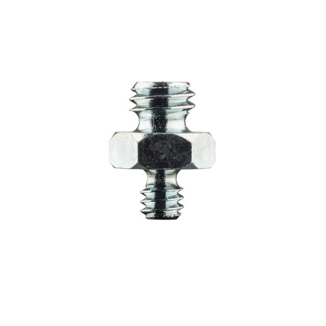 Manfrotto 147 kratki adapter Spigot pretvarja 3/8" v 1/4" ali 1/4" v 3/8" za varno pritrditev dodatkov za kamere in svetlobne opreme. Ta vsestranski adapter zagotavlja združljivost med različnimi stojali in napravami.