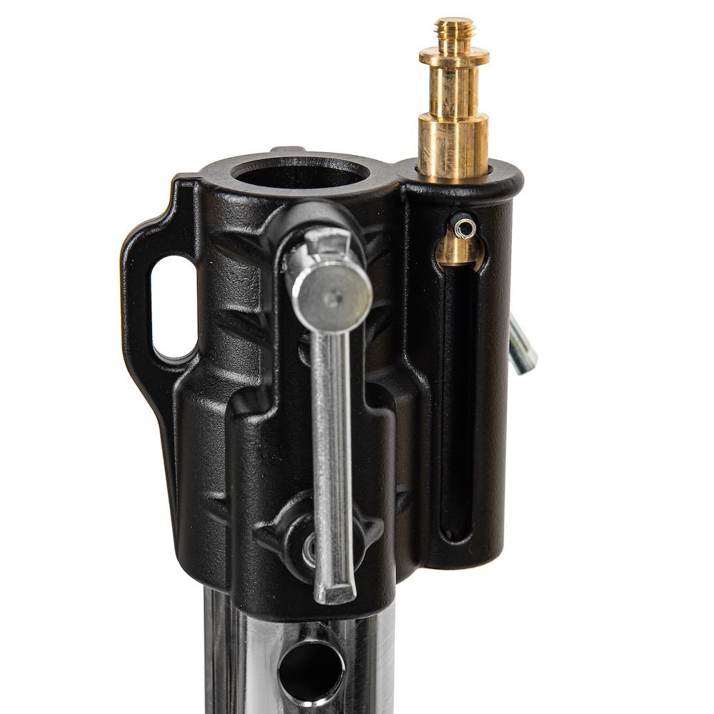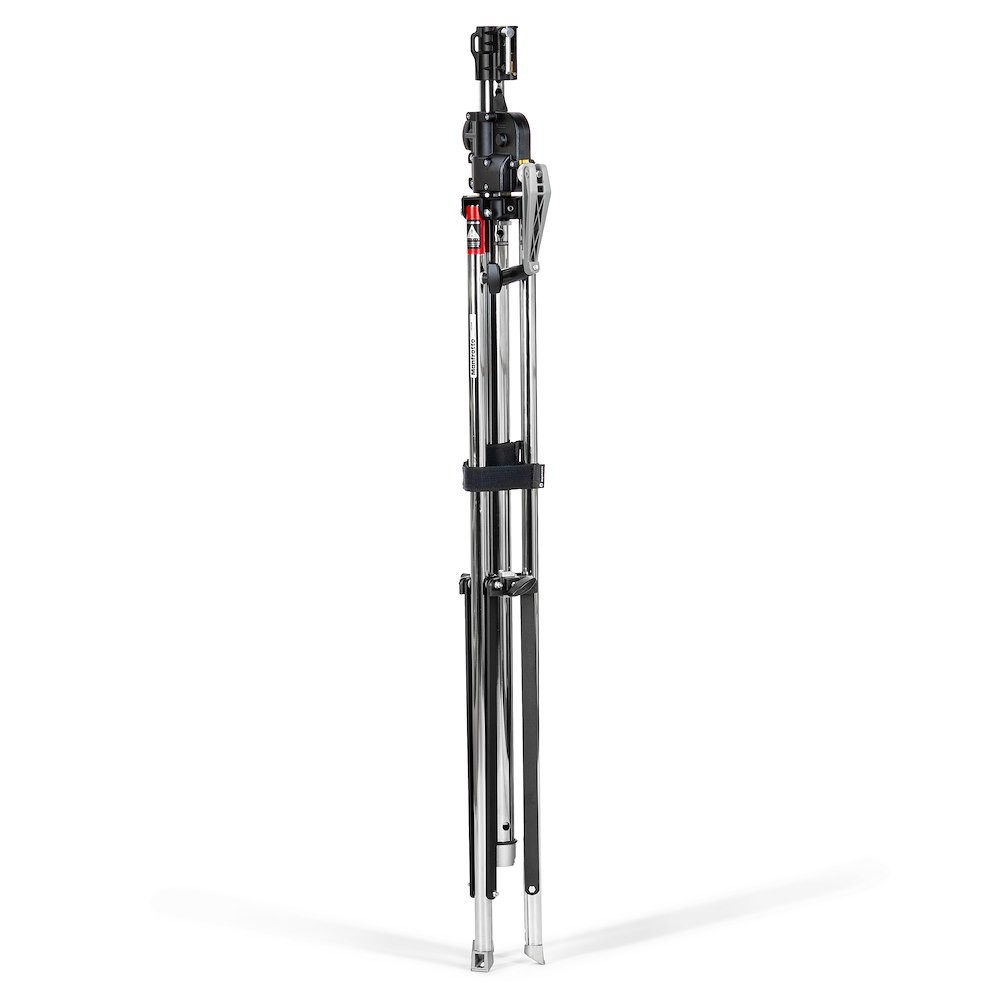 Stojalo Manfrotto 083NW Wind Up Stand združuje izjemno trdnost z gladkim in natančnim delovanjem. Njegov patentiran zobni stolp z varnostno ročico dvigne in spusti breme do 45 kg brez nenadnih padcev, medtem ko se dvodelna konstrukcija iz kromiranega jekla (premer 55 mm + 45 mm) razteza do delovne višine 247 cm. Ena nastavljiva izravnalna noga zagotavlja popolno navpično poravnavo na neravnih tleh, univerzalni vrh pa ponuja 28 mm Junior sprejemnik, 16 mm Baby čep in 3/8″ navoj za popolno združljivost.