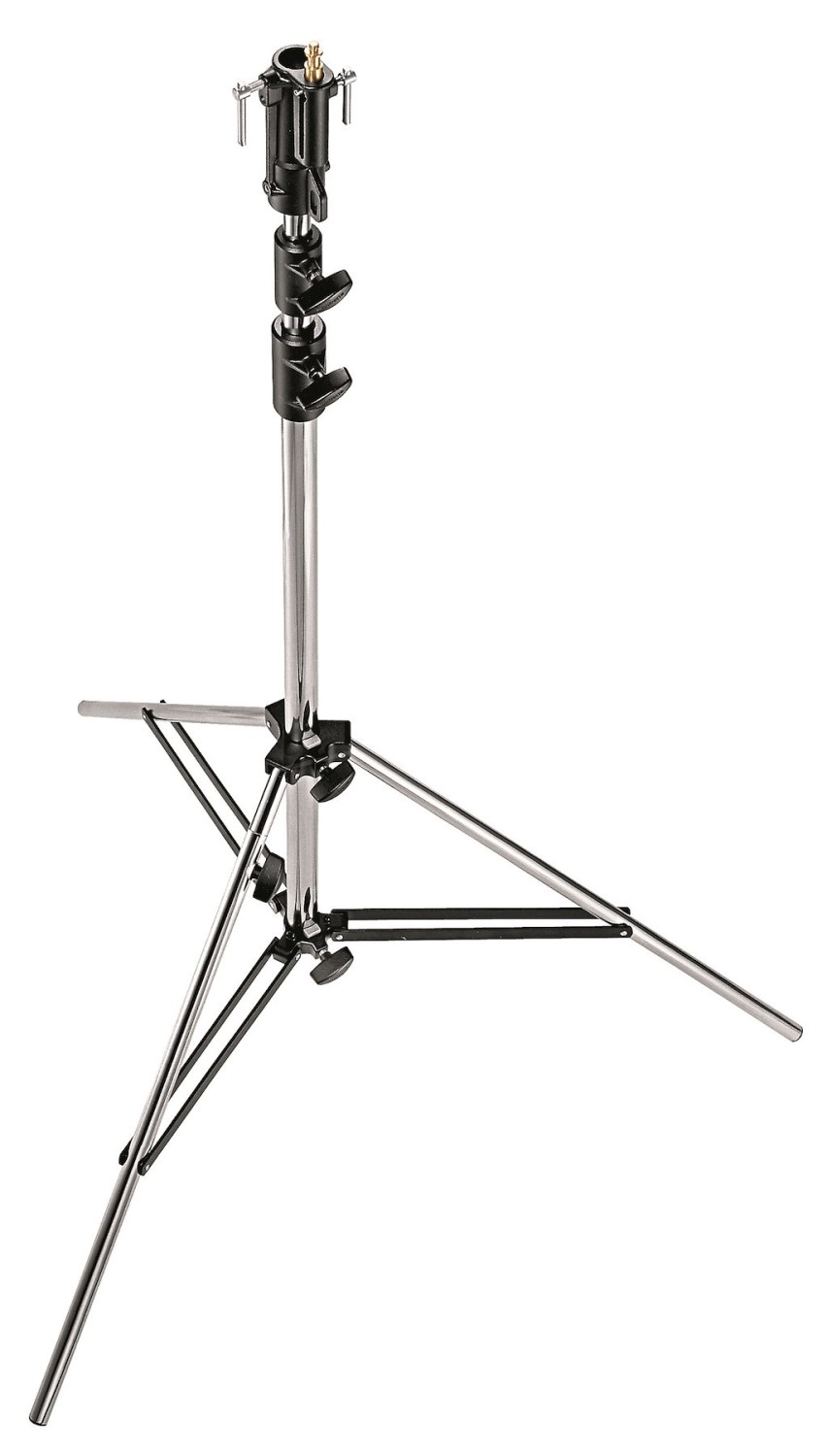 Manfrotto 007CSU Steel Senior Stand je profesionalni stojalo za težko opremo, izdelano iz kromirane jeklene konstrukcije, zasnovano za maksimalno stabilnost in varnost pri podpori težke svetlobne opreme v studijskem ali zunanjem okolju.