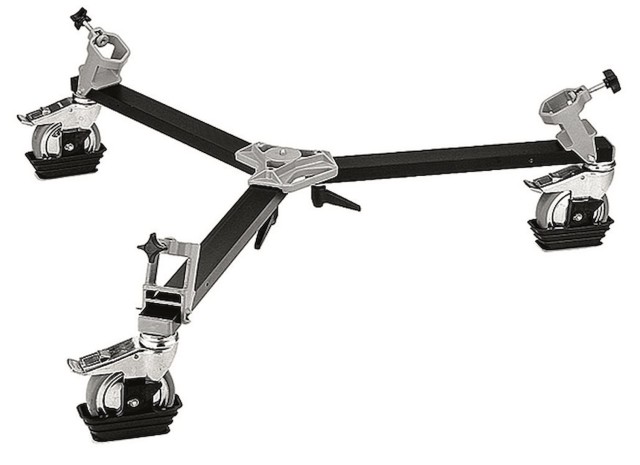 Manfrotto 114 je trikotni aluminijasti okvir, ki nosi do 60 kg, sprejme kateri koli stativ z nogami 100 mm ali manj in se premika na treh velikih 127 mm gladkih gumijastih kolesih z individualnimi zavorami na nogah in vgrajenimi zaščitami za kable, ki preprečujejo zapletanje. Noge se za prevoz v nekaj sekundah zložijo (brez orodja), nizkoprofilna zasnova pa ohranja težišče blizu tal za maksimalno stabilnost pod težkimi kamerami. V kombinaciji s 100-milimetrskim stojalom s skledo dobite klasično studijsko stojalo.